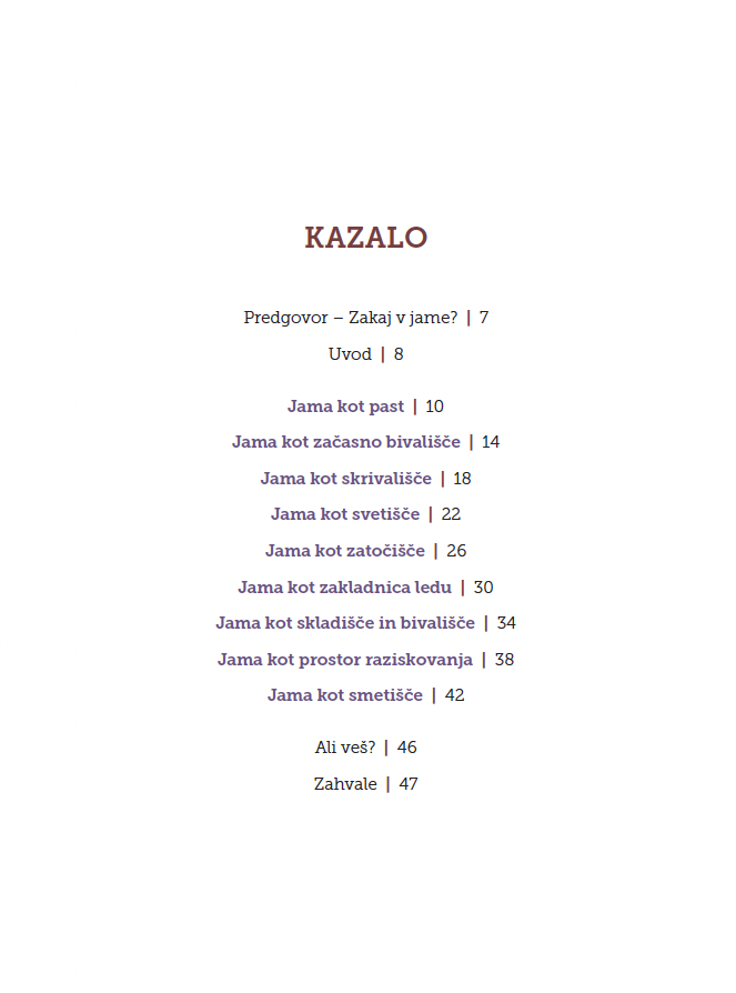 The book contains nine chapters that look at caves in various functions (caves as refuges, caves as rubbish dumps, etc.) All the chapters follow the same structure: an introduction to the cave function, an interesting facts section, information on an object/find from a specific cave, information on the given cave, and a ‘Did you know?’ section.