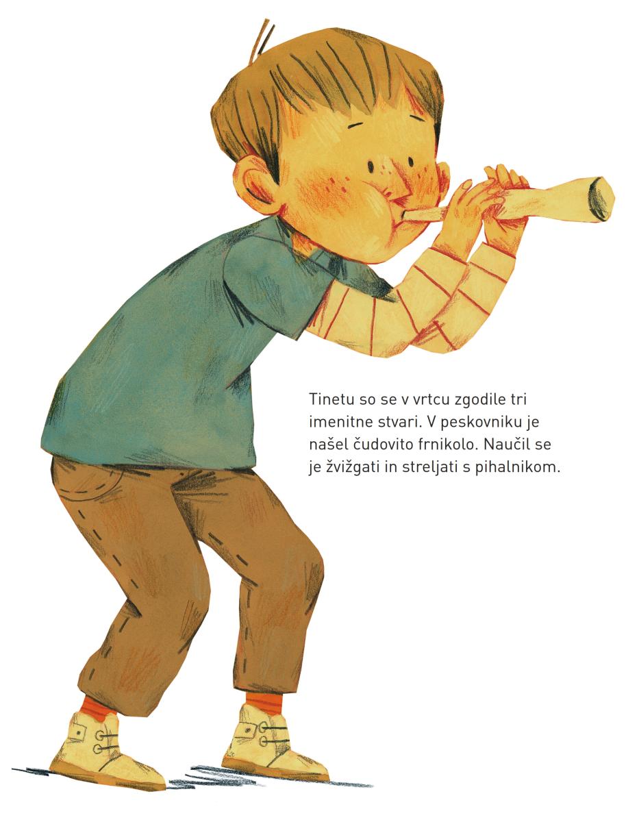 This is not the first time Žiga X Gombač writes about the relationship between father and son, and once again he has managed to create a sensitive and original story about wanting to share a secret, the lack of time parents have, and enjoying shared moments, conversation and play. Igor Šinkovec has created playful and humorous illustrations that build on the text.
