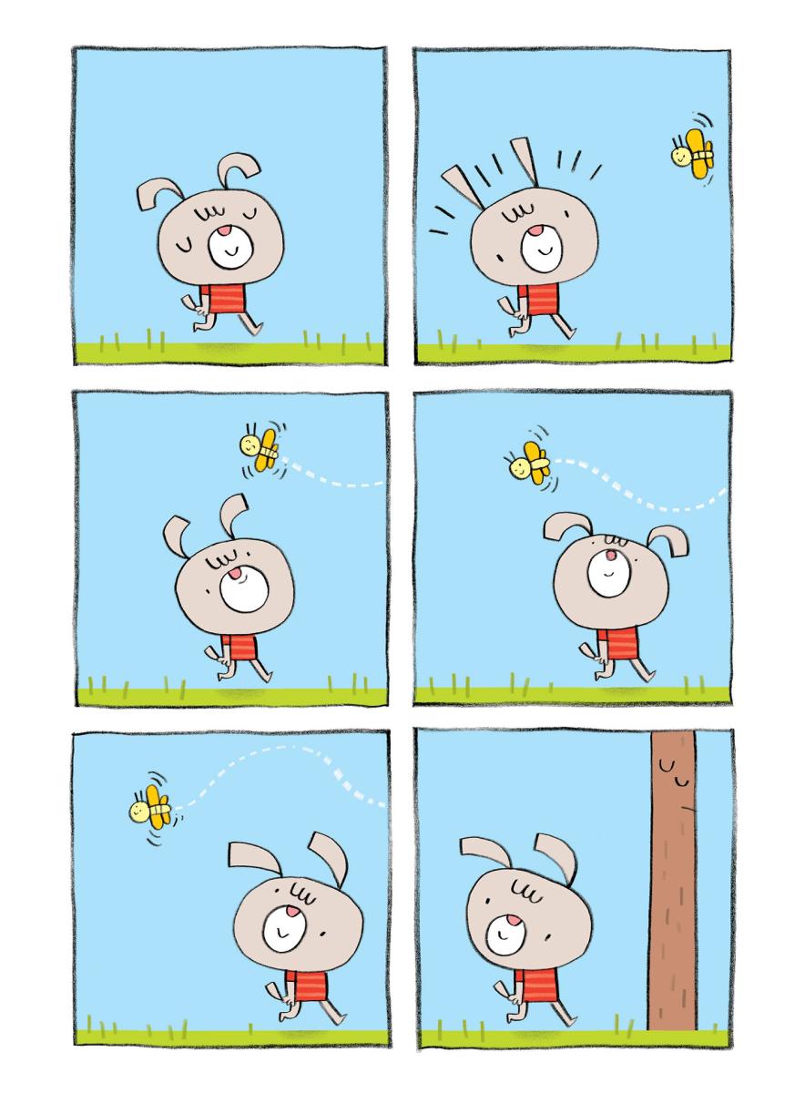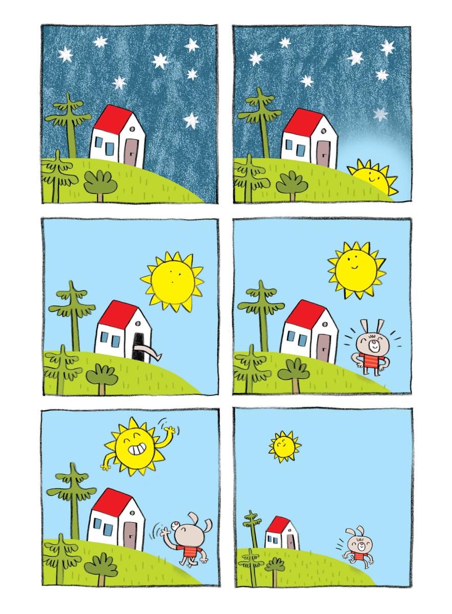 The comic follows Filip on his walk to the top of a hill and back home. His journey is packed with adventure. It takes young readers into the world of comics. It invites you to read and tell stories, whether it is an independent walk between the pages of the book or a group reading that connects young and old storytellers and observers.