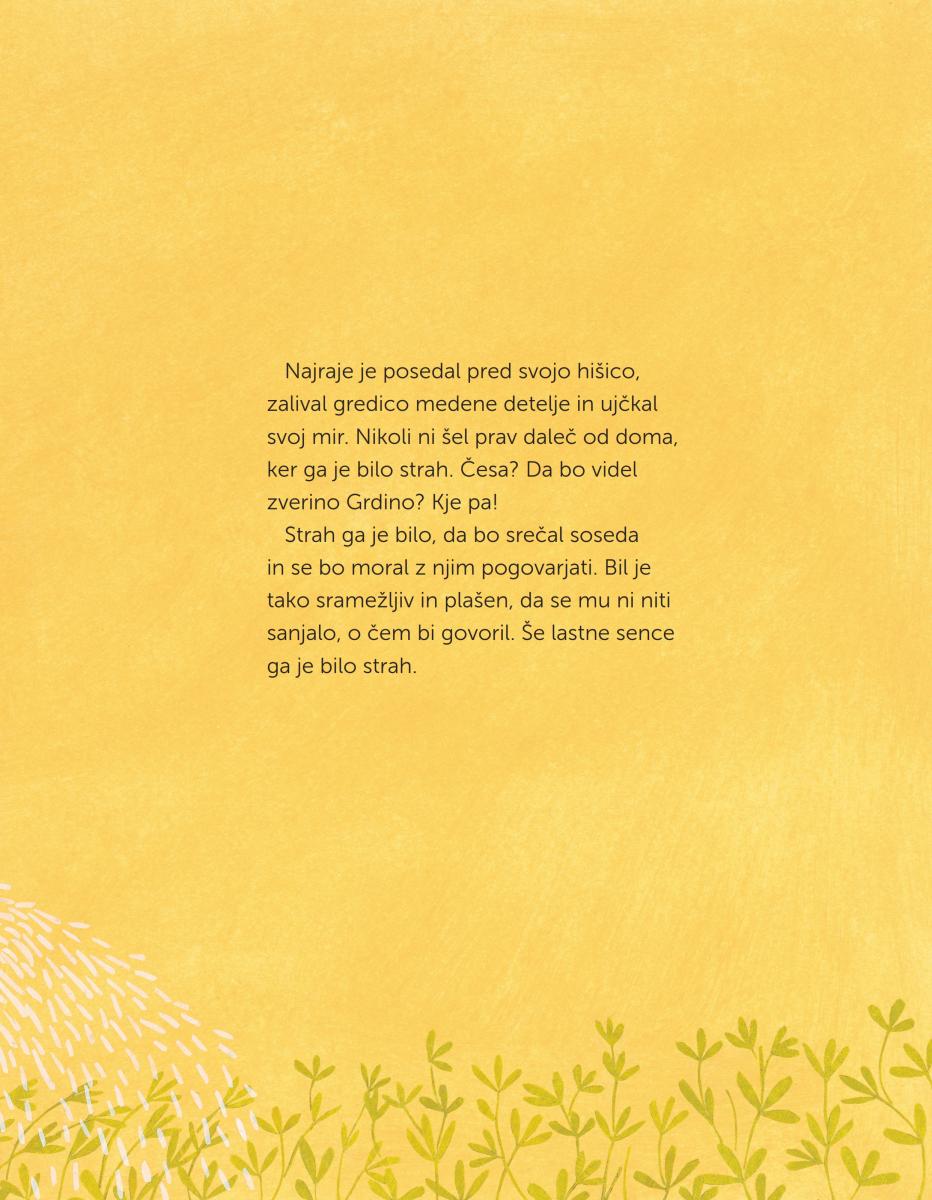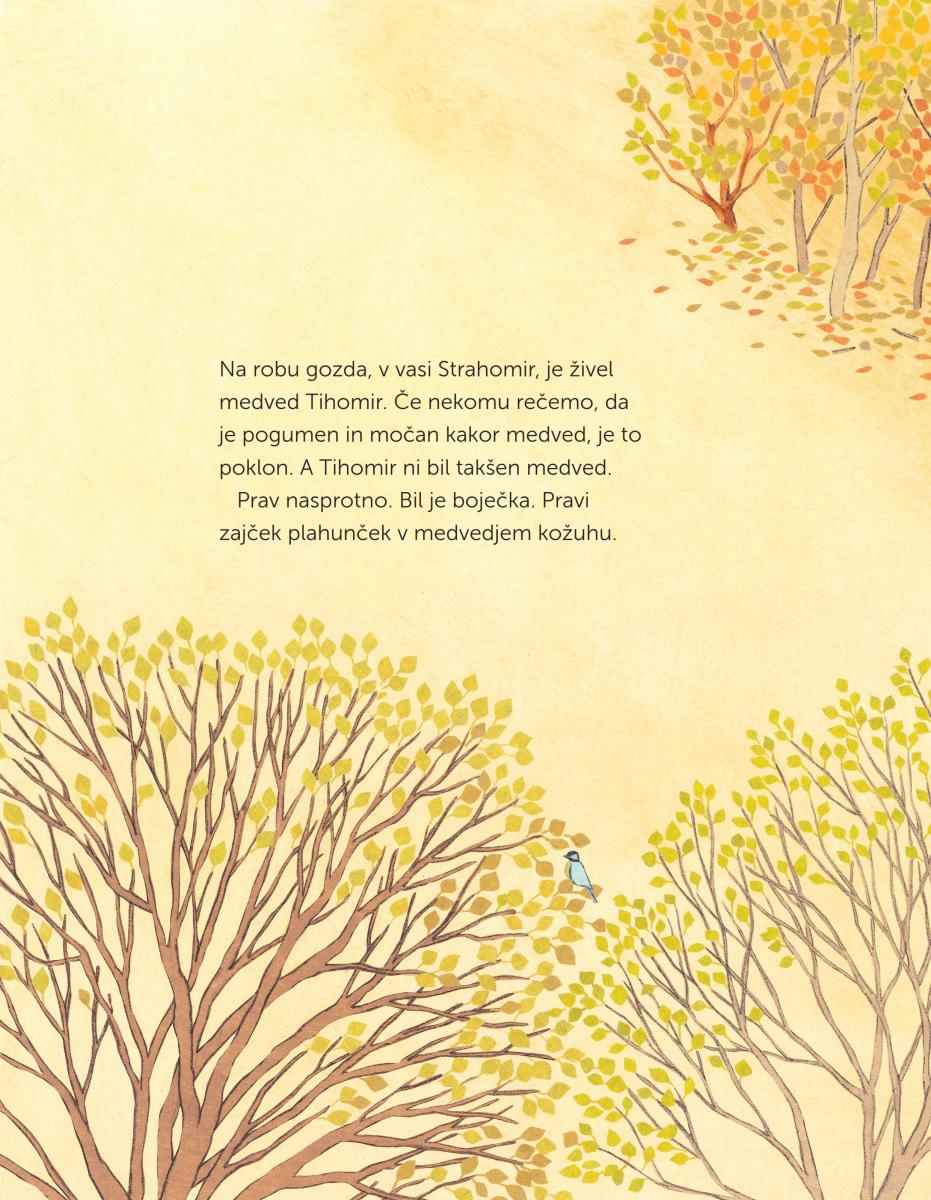 Picture book is a fantastic combination of sensitivity for the heroes while adding some mischievousness and linguistic cleverness to the mix. The story about a bear, who is an ordinary rabbit, and a rabbit, who strikes fear into the bear’s heart, was wonderfully illustrated by Anka Kočevar.
