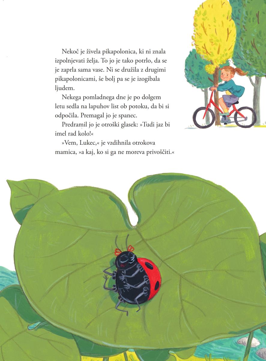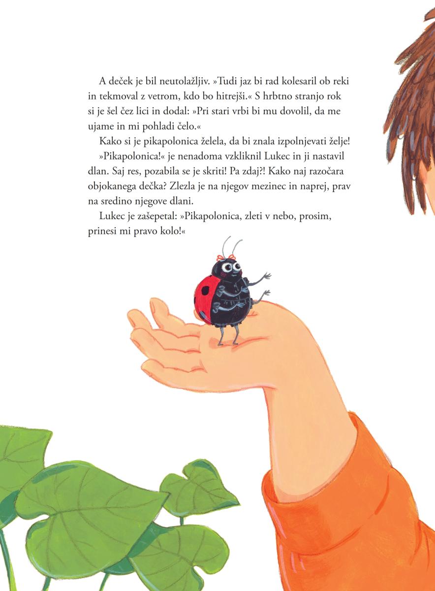 Ko Lukec naleti na pikapolonico, si zaželi kolo, ki je že dolgo njegova želja. A kaj, ko ne ve, da je našel prav pikapolonico, ki ne zna izpolnjevati želja. Vendar pa se živalica ne da kar tako in razmišlja, kaj vendarle lahko stori. Po pomoč se obrne k pravljičnim bitjem, ki jim s skupnimi močmi uspe uresničiti dečkovo željo, pa še pozabavali in spoprijateljili so se spotoma.